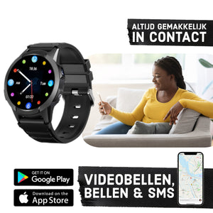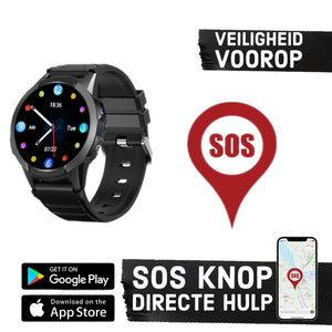 Met 1 druk op de knop wordt er gelijk hulp ingeschakeld, kan er gelijk gebeld worden en kunt u ook nog de locatie achterhalen waar de smartwatch zich bevindt.