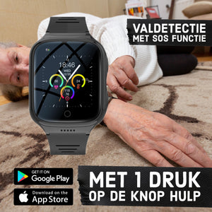 Het horloge is voorzien van een optie genaamd "valdetectie". Wanneer de senior valt met het horloge om zal er als eerst een melding in het scherm komen of het een vals alarm is, wanneer dat zo is kan de ouderen drukken op annuleren. Mocht er wel wat aan de hand zijn dan zal het horloge binnen 3 seconde gaan bellen naar het vooraf ingestelde SOS nummer. Zo bent u snel in contact met elkaar in zulke situaties.